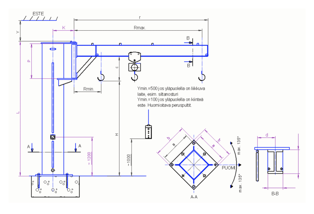 Kuorma | Mitat | Puomin | Pylvään | ||||||
