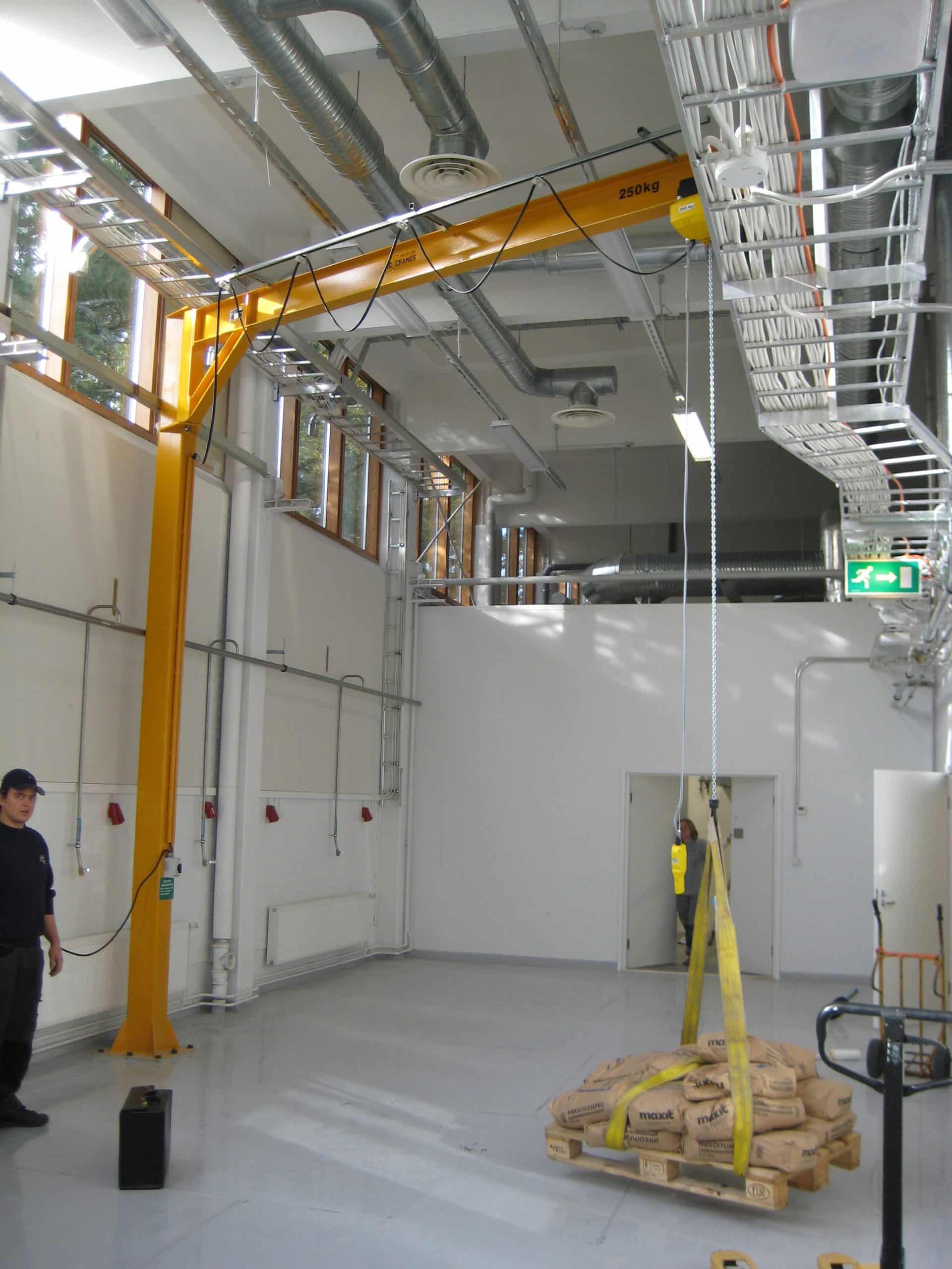 Pylväskääntönosturit soveltuvat erinomaisesti taakkojen siirtelyyn työpistekohtaisesti. AC Cranes valmistaa ja asentaa kääntönosturit avaimet käteen perjaatteella. AC Cranes pylväskääntönosturit ovat CE-merkittyjä. Rautarakenteet valmistamme itse ja nostimina kääntönostureissa käytämme ketjunostimia, taljoja, paineilmanostimia ja keventimiä. Kääntönosturit on mahdollista saada alta-tuetulla I-palkki puomilla tai vetoaisallisena profiili tai I-palkki puomilla 2 – 7 m pituisina. Vakio kapasiteetit 125 – 2 000 kg.
