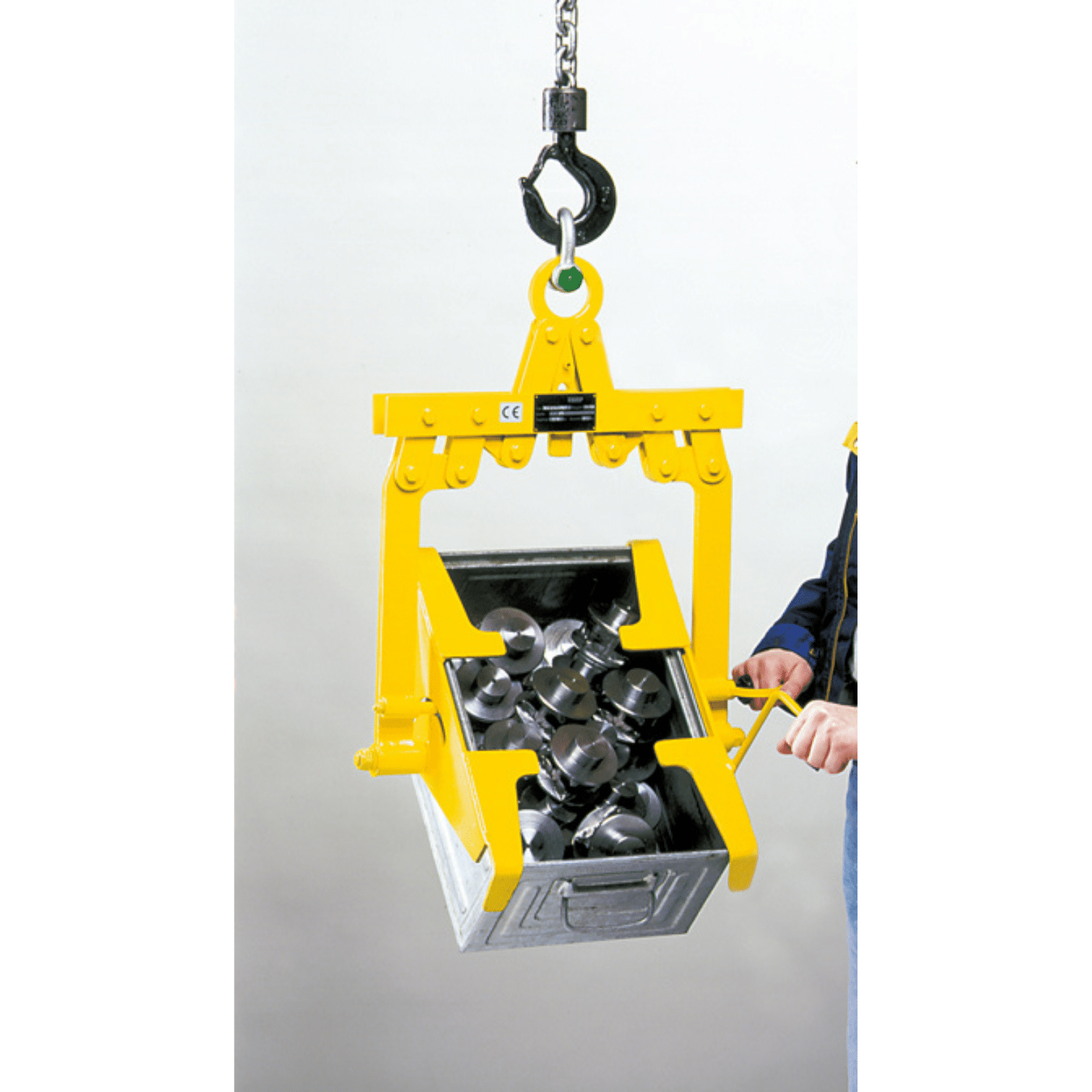 Varmistusmekanismi estää tahattoman kippaamisen.Leuat tarttuvat laatikon reunuksen alta.